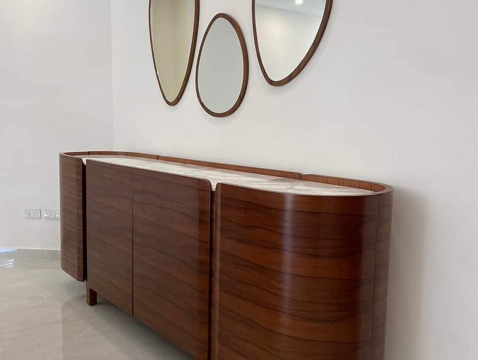 مرآة عصرية تضيف إحساسًا بالاتساع وتكمل جمال البوفيه