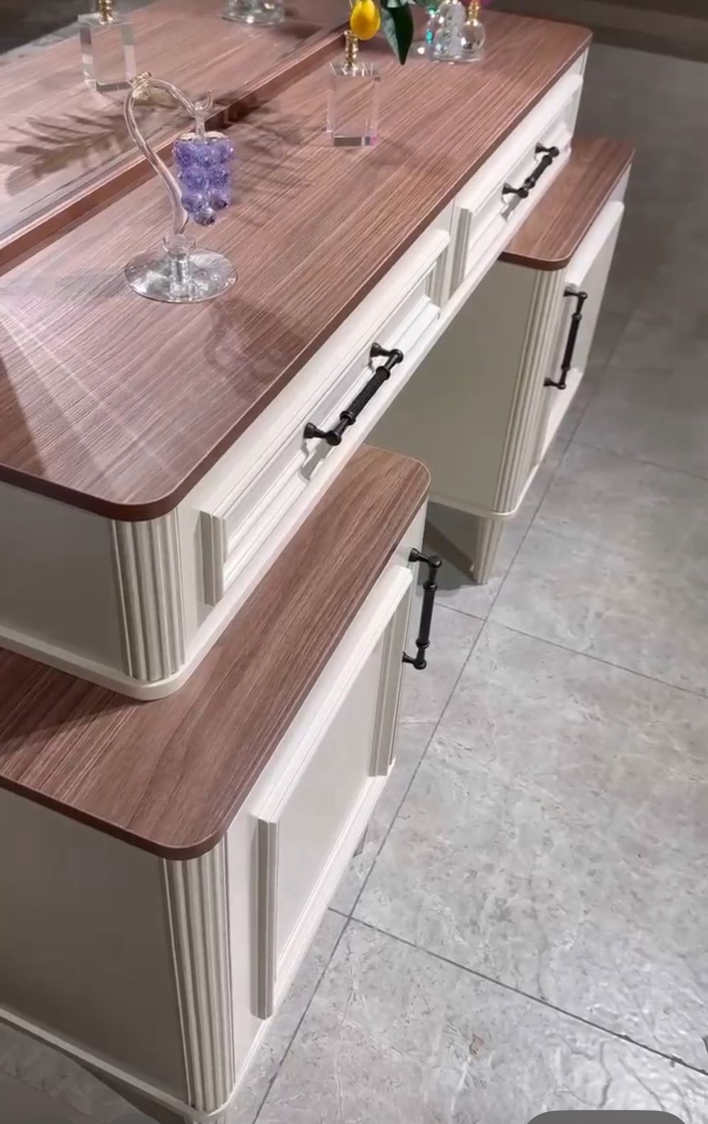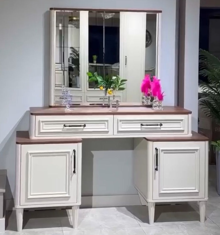 🪞 تسريحة 120 سم مع مرآة بلورية تعكس الضوء وتضفي إحساسًا بالرحابة والبهجة. مساحة مثالية لروتينك اليومي.