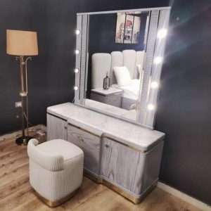 🪞 تسريحة 120 سم مع مرآة بلورية تعكس الضوء وتضفي إحساسًا بالرحابة والبهجة. مساحة مثالية لروتينك اليومي.